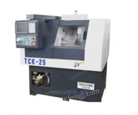 TCK-20/25系列机床是瑞士排式高速精密数控车床,属于电脑走机类型的机床。该类机床适合做中小直径零件高精度、高效率的加工。 机床的排布采用两轴控制排式架排布的结构,结构简单、换快捷、可靠性极高。 本机床数控系统具有钻孔循环、外圆循环、自定义循环;内、外螺纹车削,刚性攻丝、套丝、尺寸输入、工件坐标转换、恒表面切削速度控制等车削加工标准功能,具有极强的吸震性能和刚性保证,顺畅排屑空间, 高效冷却循环系统。 机床配有高速精密同步导套,因此可以完成对钢件、不锈钢件的大批量精密加工以实现高品位零件的高速切削。 机床的送料部分可以配备自动送料器,实现单根、多根棒料自动连续加工,零件传送装置,可自动将已完工零件传送到机外,避免开关门引起停机,以实现一人操作、看护多台机床的“一人多机”加工模式,为工厂节省人力资源。