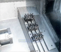 产品特点: 模块化设计与制造,整体结构紧凑,性价比高。 床身底座为整体式铸造,45°倾斜床身有利于工件上下和铁屑排出,增加切削力度和机床的刚性。 X/Z向均采用进口线性滚动导轨,减少了机床磨损,滚动导轨的超大尺寸预加负荷减少导轨间隙,增加了加工精度和延长机床的使用寿命。 机床主轴轴承采用精密角接触球轴承,可得到高精度、高承载能力,高转速的优化组合,持久耐用,可选用主轴单元、电主轴。 排式架,换误差小,换高速准确,大幅节省加工时间。 全防护机床,提高了防水、防屑能力。 适用范围: 此款机床适合的加工领域:航空器材、光学精密件、汽车零部件、电子接插件、按钮配件、小阀门、钟表零件、螺纹接头等。对小 零件;精密件、有色金属有特别良好的加工。 小五金零件:钢件、不锈钢件、铜铝件 短轴、盘类零件:精密轴销、轴套、主轴、环 精密螺纹:螺纹接头、精密主轴锁帽、牙复螺母 技术参数: 产品型号 CNC320 CNC400 回转直径 350mm 350mm 加工直径 160mm 160mm 标准加工直径 75mm 75mm 工件长度 350mm(夹头)200mm(液压卡盘) 350mm(夹头)200mm(液压卡盘) X轴行程 320mm 400mm Z轴行程 320mm 320mm 主轴通孔直径 Φ49mm/主轴单元(选配) Φ49mm/主轴单元(选配) 拉管通孔直径 Φ40mm/主轴单元(选配) Φ40mm/主轴单元(选配) X 轴快速移动速度 25000mm/min 25000mm/min Z 轴快速移动速度 25000mm/min 25000mm/min 主轴转速范围 50-3000r/min,50-5000r/min(高速) 50-300r/min0,50-5000r/min(高速) 夹紧方式 弹簧夹头夹紧/液压卡盘(选配) 弹簧夹头夹紧/液压卡盘(选配) 架类型 排架/电动架/六工位塔(选配) 排架/电动架/六工位塔(选配) 主电机功率 3.7kw 3.7kw 尾座 无 无 外型尺寸 1800×1550×1700mm 1800×1550×1700mm 机床净重(约) 1500kg 1500kg