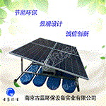 南京古蓝太阳能曝气机适用河道治理,湖泊治理,水库治理,农村水处理。 产品优势: 1.全气候太阳能供电,绿色、环保、节能; 2.自动定时开关系统可设置不同时段的运行时间(自动开启自动关闭); 3.专用电池保证连续阴雨天气设备的基本运行,电池直接供电可续航5-6小时; 4.系统金属部件全部采用铝合金及不锈钢(304不锈钢),防止锈蚀,使用寿命长; 5.可加高压风力发电机组,有风可24小时发电。 6.生态环保,无任何化学药剂投加,无二次污染。 解层式太阳能曝气机净水原理 解层式太阳能曝气机,以太阳能作为设备运转的直接动力,设置独特的旋切提拉曝气叶轮,通过叶轮旋转提升作用,将底部缺氧水转移到水体表面与表层富氧水混合;表层富含水通过离心旋转横向水平扩散、纵向进入底层缺氧区。由此实现水体解层、增氧和纵横向循环交换三重功效,较大限度地将表层超饱和溶解氧水转移到水体底层,增加底层水体溶解氧,消除自然分层,提高水体自净能力。 解层式太阳能曝气机具有以下功能: 上下交换混合复氧:解层过程是一个混合复氧过程,将表层富含溶解氧水转移到底层,提高底层水体溶解氧含量,预防水体因缺氧而腐化变质,并防止硫化物、胺类等化学物质散发,促进底层水体生化净水效果。同时,水底富氧防止磷的厌氧释放,悬浮泥可有效吸附溶解性磷化物。 激发环境自净能力:底部水体在温度提升和溶解氧增加情况下,对底部沉积的动物排泄物、有机淤泥和藻类等有害物质进行分解,改善底质,激活底泥生态功能,水体自净负荷得到提高。 强力循环制造活水:活水是湖泊次生命,解层设备形成强大的主水流和感应流,能有效打破温跃层形成的自然滞水带,使整个水体形成循环活水流。 快速抑制消除水华:通过解层方式,消除水体中溶解氧、温度和盐度的分层,稳定水质。表层高浓度含藻水转移到底部,在低温、无光条件下受到抑制,表层藻类迅速减少,部分被底层浮游生物摄食而消除,可快速消除水华并防止再次发生。 污染物资源化利用:表层水体中高浓度的藻类,转移到水体底层后部分成为鱼类、贝类的饵料。 提高观感改善生态:设备短期内可以降低生化需氧量(BOD), 减少水中固体悬浮物(TSS),提高水体能见度,去除异味和降解水体底部淤泥。同时,可防止鱼类季节性死亡,并抑制有害水生杂草生长。